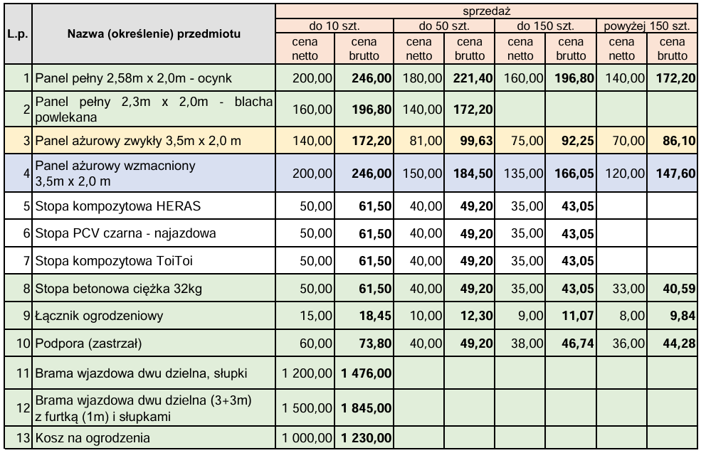Aktualne ceny sprzedaży poniżej: